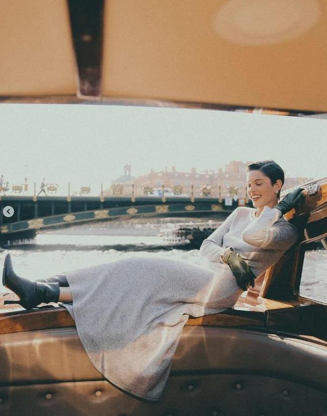 灰色针织连衣裙,能够带来一种和谐而自然的感觉,从而达到完美的视觉效果,搭配一双黑色靴子,不仅彰显了秋天的沉稳与大气,更添了几分女性的柔美与魅力,有着与生俱来的高级感,还能在低调中展现出独特的魅力。