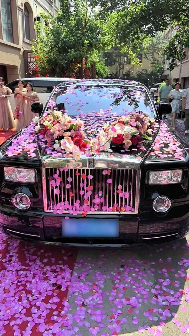 这场婚礼筹备了整整半年,光是婚车就租了十二辆,打头的是一辆价值千万的劳斯莱斯幻影,引得路人纷纷驻足拍照。